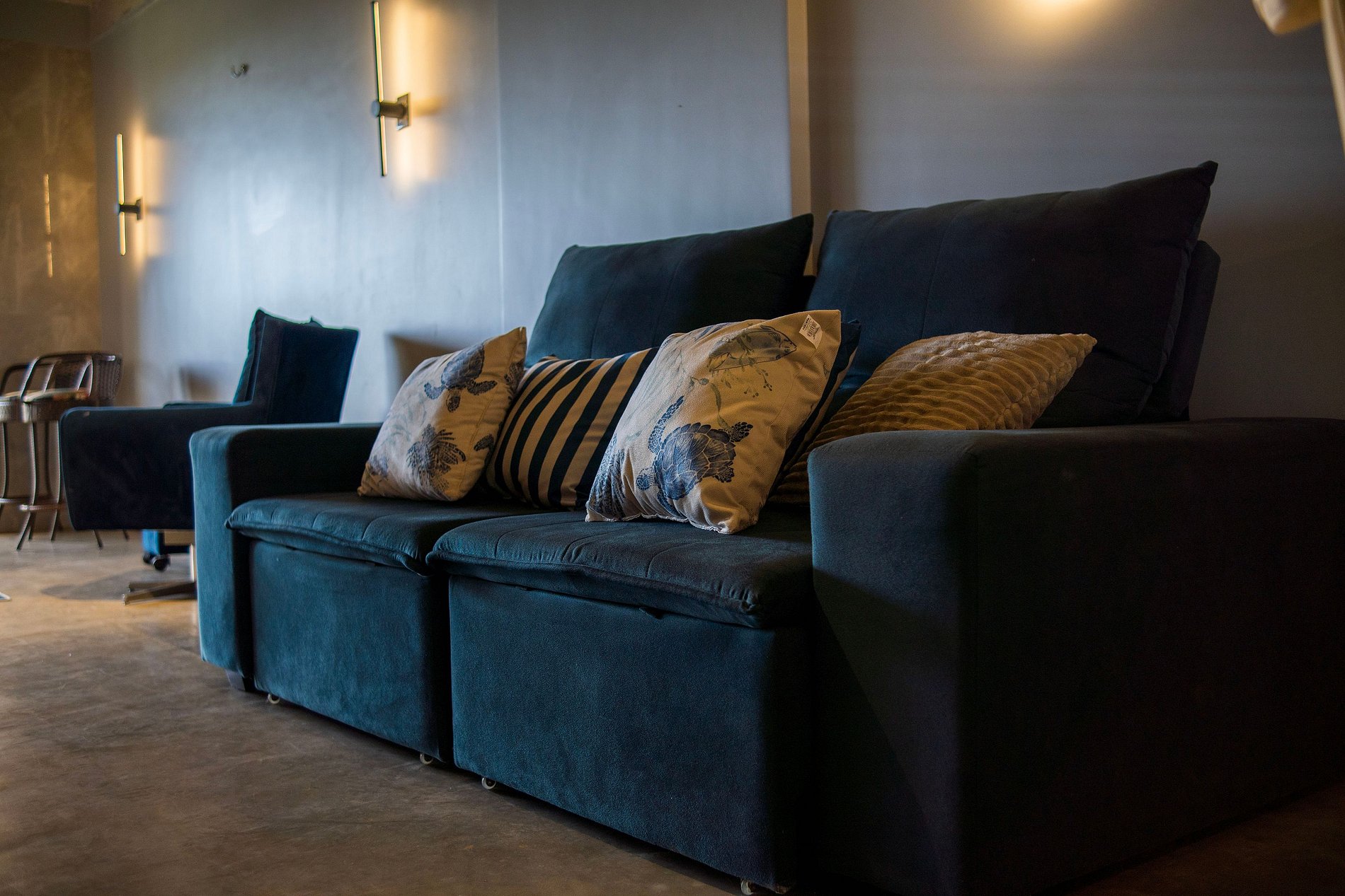 Área de estar com sofá/cadeira